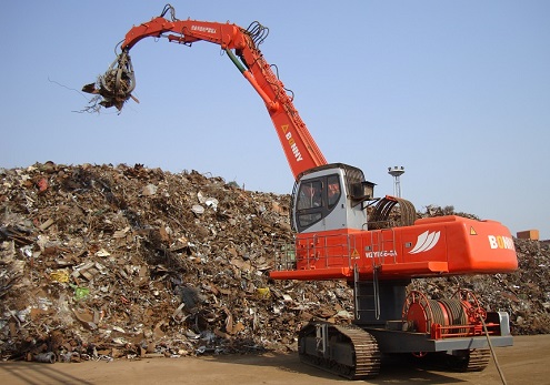 WZYD55-9电动型液压抓料机适用于钢厂料场装卸废钢、装卸火车皮物料、港口码头装卸物料,废钢等,具有以下特点: