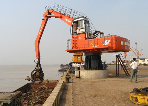 ●可以选择配备多种工作装置(抓斗)实现废钢、圆木、木屑、原煤、草料等多种物料的抓取、装卸