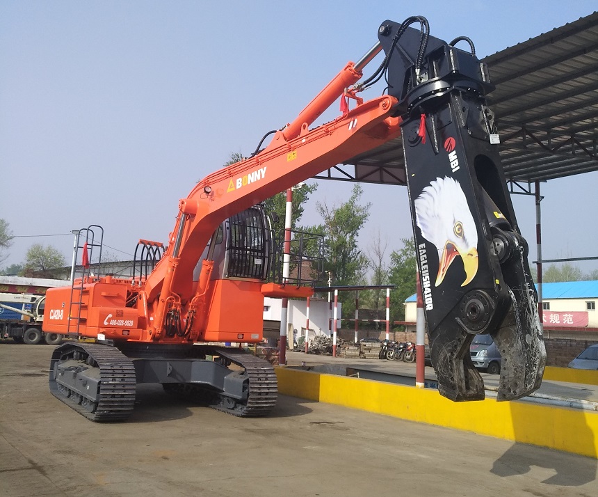 CJ420-9柴油型大力剪适用于报废汽车的拆解,车架、车梁、轴等钢件的剪切,钢厂料场废钢剪切,具有以下先进特点