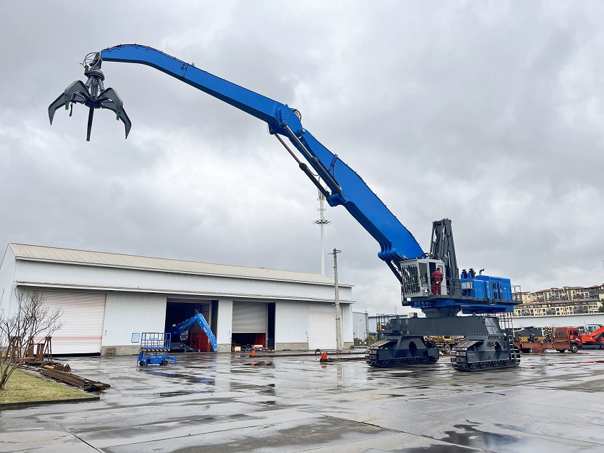 ●可以选择配备多种工作装置(抓斗)实现废钢、圆木、木屑、原煤、草料等多种物料的抓取、装卸